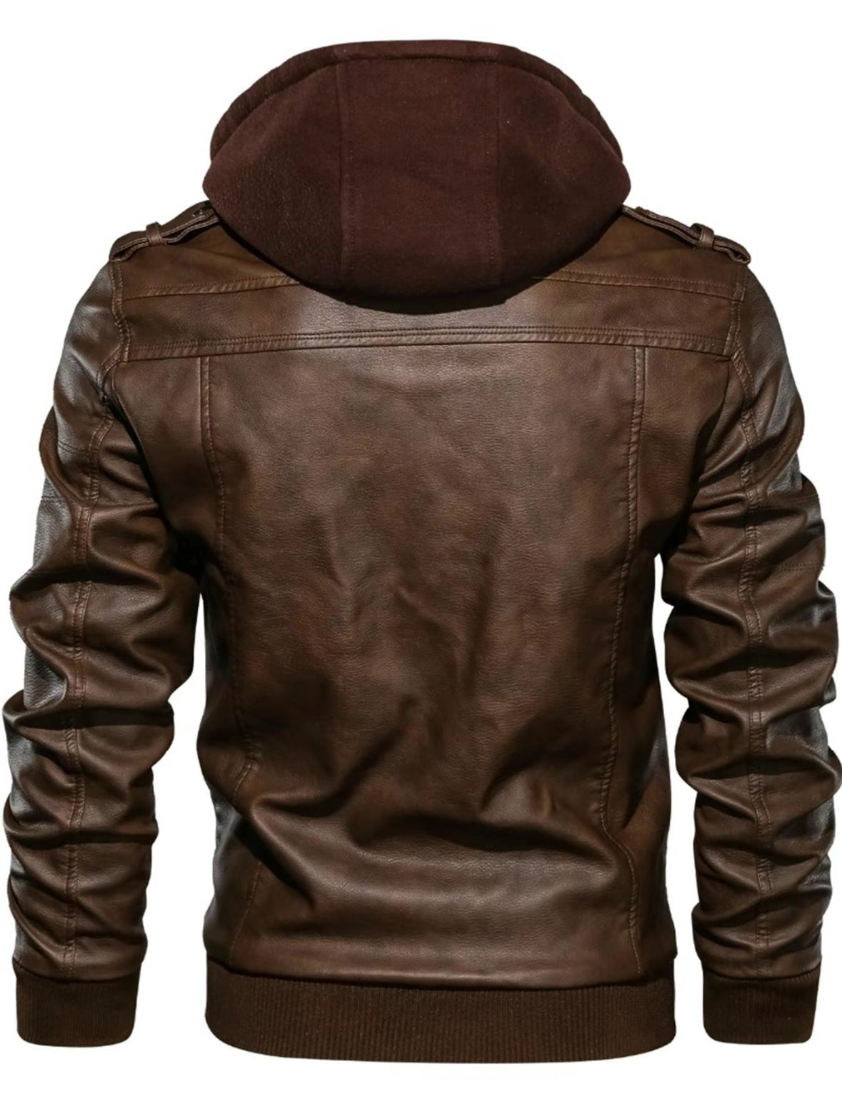 ⭐⭐⭐⭐⭐“The material is insane — soft yet sturdy. I ride my bike daily, and this jacket blocks the wind perfectly. The hood gives it a street-style twist while still looking mature. I got it in Coffee Brown and people think it’s real leather. Totally worth it.”